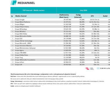 Mediapanel: Wyniki badania za marzec 2026 (outdoor)