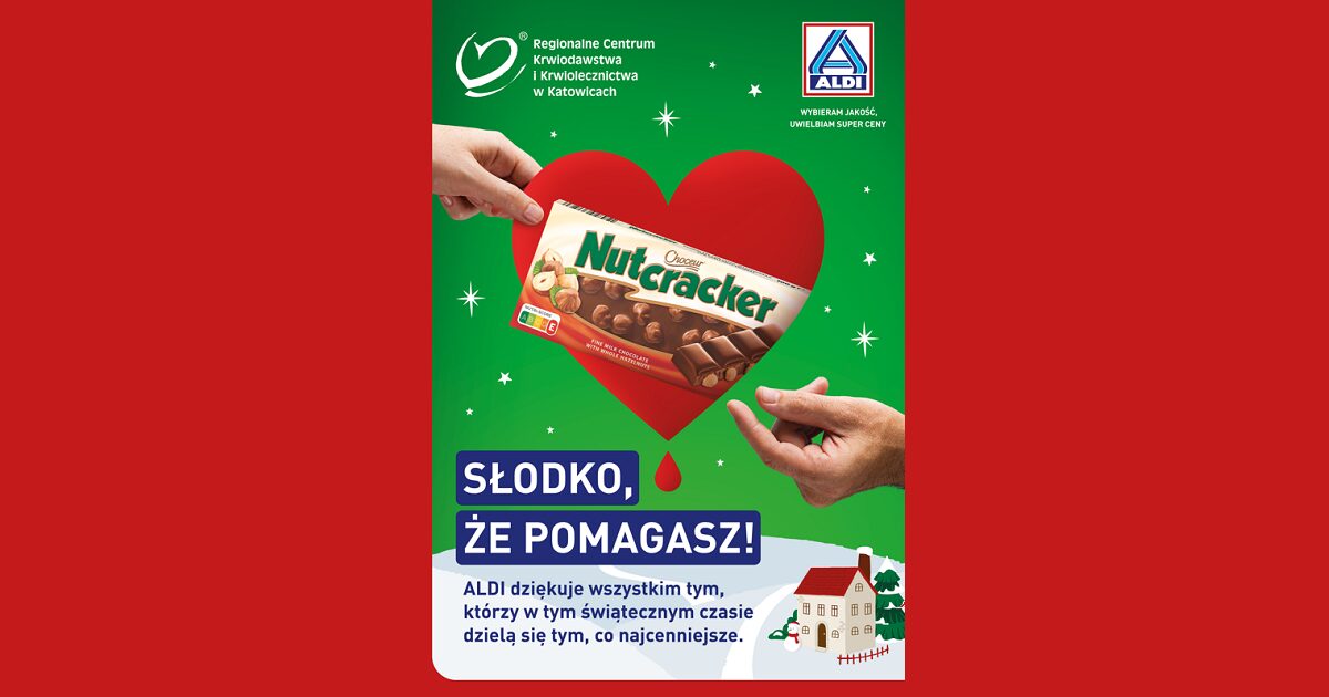 To już trzecia edycja akcji „Słodko, że pomagasz” realizowana przez ALDI we współpracy z RCKiK w Katowicach i pierwsza dla Warszawy. Rozszerzenie działań jest wyrazem zaangażowania sieci w promocję honorowego krwiodawstwa w regionach, w których funkcjonują jej sklepy. Wybór czasu akcji nie jest przypadkowy, łączy on okres premiery flagowej czekolady z orzechami w nowej odsłonie z obchodzonymi w Polsce Dniami Honorowego Krwiodawstwa, które przypadały na koniec listopada.