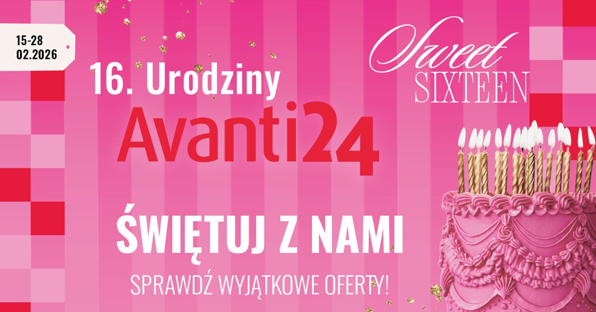Serwis Avanti24.pl przygotował specjalną akcję promocyjną z okazji 16. urodzin. Projekt pod hasłem „My Sweet Sixteen” jest realizowany w dniach 15–28 lutego 2026 roku i obejmuje strefę tematyczną poświęconą modzie, urodzie i zakupowym rekomendacjom.