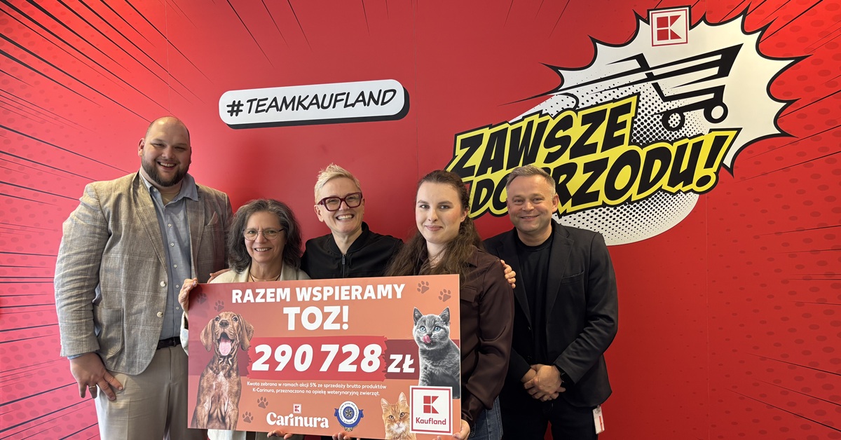 Akcja „Zwierzaki z charakterem”, realizowana przez Kaufland we współpracy z Towarzystwem Opieki nad Zwierzętami w Polsce, dobiegła końca, a zebrane środki zostały już przekazane organizacji. W jej ramach Kaufland nie tylko promował adopcję zwierząt ze schronisk, ale także uruchomił mechanizm wsparcia finansowego oparty o sprzedaż karmy K-Carinura. Dzięki zaangażowaniu sieci oraz jej klientów do Towarzystwa Opieki nad Zwierzętami w Polsce trafiło blisko 300 tys. zł na bieżącą opiekę nad podopiecznymi. Działania adopcyjne przełożyły się z kolei na pierwsze adopcje oraz wzrost zainteresowania zwierzętami w wybranych schroniskach.