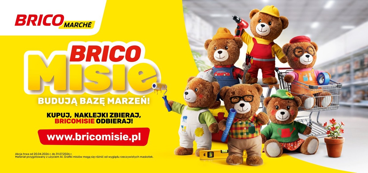 Od 20 kwietnia Bricomarché rusza z nową akcją lojalnościową „Bricomisie”, skierowaną do rodzin z dziećmi. W jej centrum znalazła się kolekcja sześciu maskotek inspirowanych światem domu, ogrodu i majsterkowania. Kampania łączy prostą mechanikę zakupową z opowieścią o wspólnym działaniu, kreatywności i nauce przez zabawę. Akcja potrwa do 31 lipca 2026 r. lub do wyczerpania zapasów.