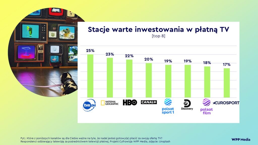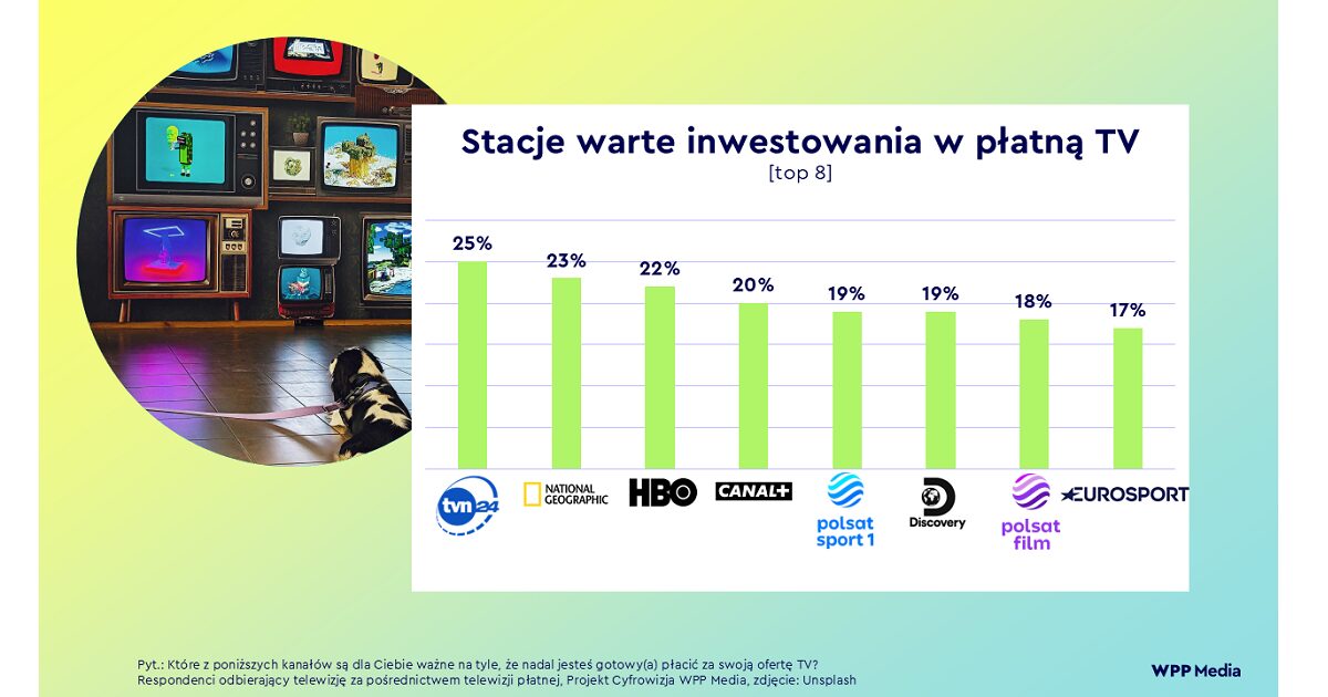 22 proc. klientów płatnej TV rozważała odejście, a 20 proc. odbiorców naziemnej TV rozważała zakup abonamentu u operatora. Projekt Cyfrowizja od WPP Media pokazuje rynek w równowadze i … paradoksalną rolę płatnego streamingu, który równocześnie zagraża, konserwuje i uatrakcyjnia ofertę operatorów płatnej telewizji. Co trzyma ich klientów? Sport na żywo, internet w pakiecie i takie kanały jak TVN 24, NatGeo czy HBO, ale także opcja kupienia za ich pośrednictwem dostępu do HBO Max, Netfliksa czy Disney+.