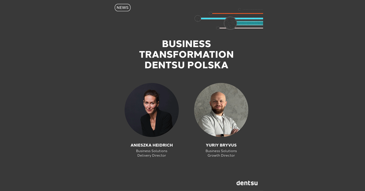 Dentsu rozwija w Polsce kompetencje Business Transformation (BX), wzmacniając swoją pozycję w obszarze transformacji biznesowej w erze AI. Zespół BX, którym pokieruje Agnieszka Heidrich i Yuriy Bryvus, odpowiada na rosnące potrzeby klientów, którzy oczekują dziś nie tylko skutecznej komunikacji, ale przede wszystkim realnego wpływu na wyniki biznesowe i trwałej przewagi konkurencyjnej.