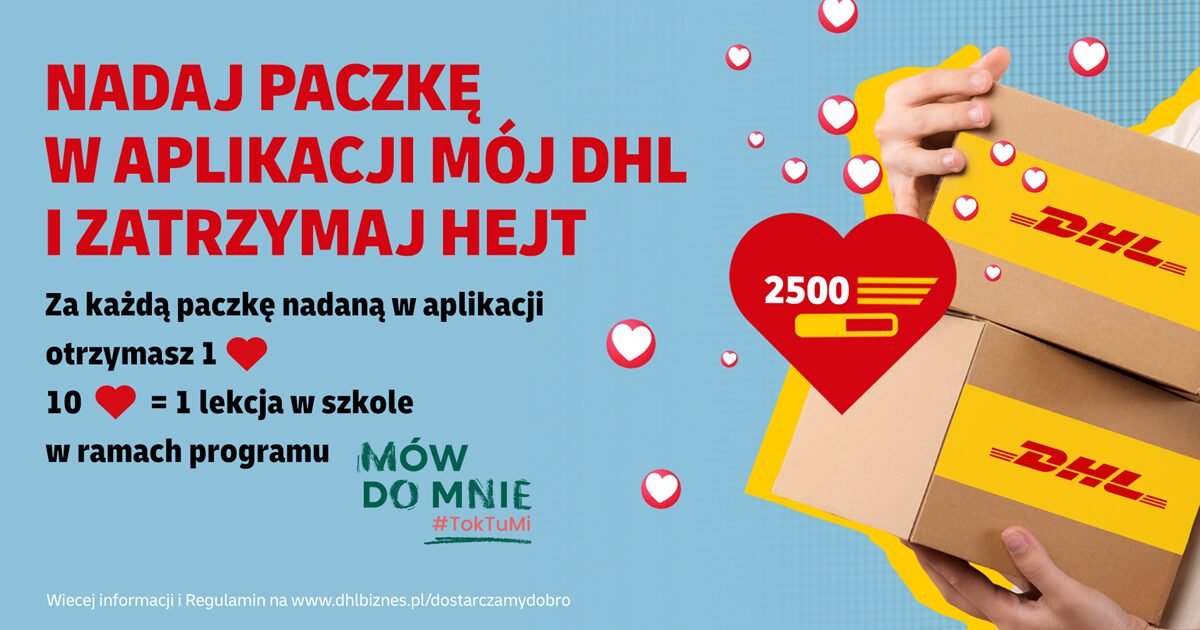 Konsumenci mogą w prosty sposób wesprzeć organizację dodatkowych lekcji poświęconych przeciwdziałaniu hejtowi rówieśniczemu i zdrowemu korzystaniu z nowych technologii w ramach programu Mów Do Mnie – #TokTuMi realizowanego przez Fundację Mentalnie Równi. Każde nadanie paczki w aplikacji Mój DHL przyczynia się do przekazania darowizny na rzecz realizacji kolejnych lekcji w całej Polsce.