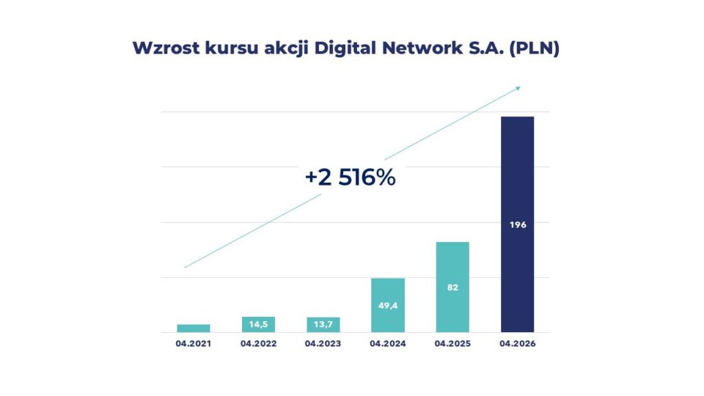 Kilka dni wcześniej Digital Network opublikował wstępne dane finansowe za 2025 rok. Skonsolidowane przychody wzrosły o 51% r/r, osiągając 112,9 mln zł. Wyniki te uwzględniają jedynie dwumiesięczny wkład Braughmana, który samodzielnie wygenerował w 2025 roku blisko 130 mln zł przychodów.