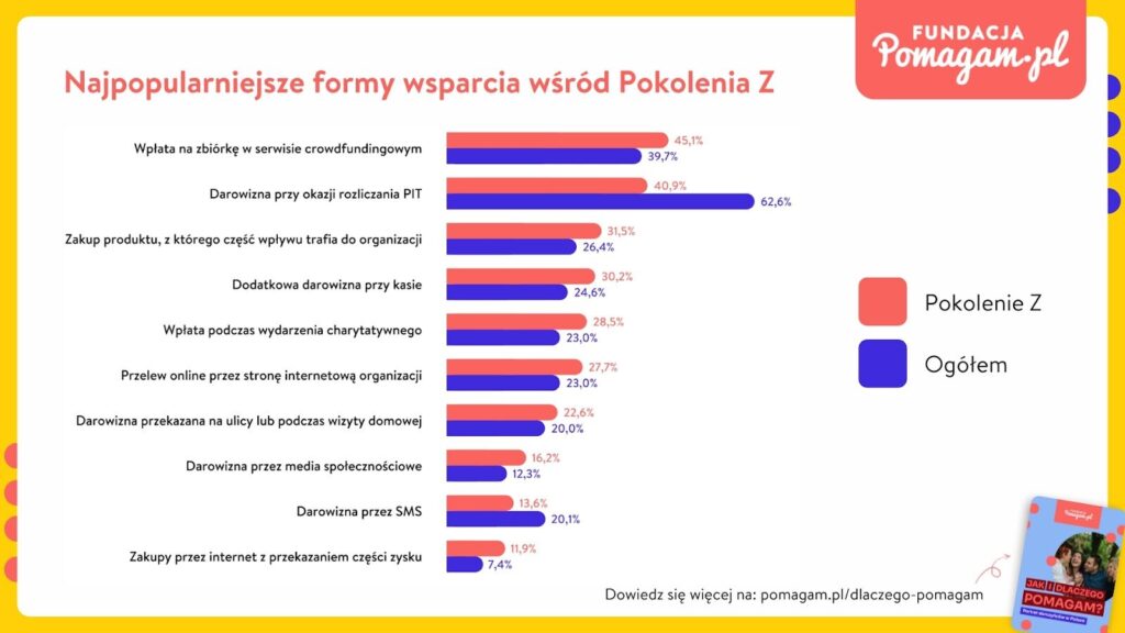 Ich pomaganie jest też bardziej spontaniczne. Ponad dwie trzecie „Zetek” przyznaje, że decyzję o wsparciu podejmuje pod wpływem emocji. Nie planują budżetu na darowizny, ale reagują na konkretne historie, które ich poruszą, przekazując jednorazowo mniejsze kwoty.