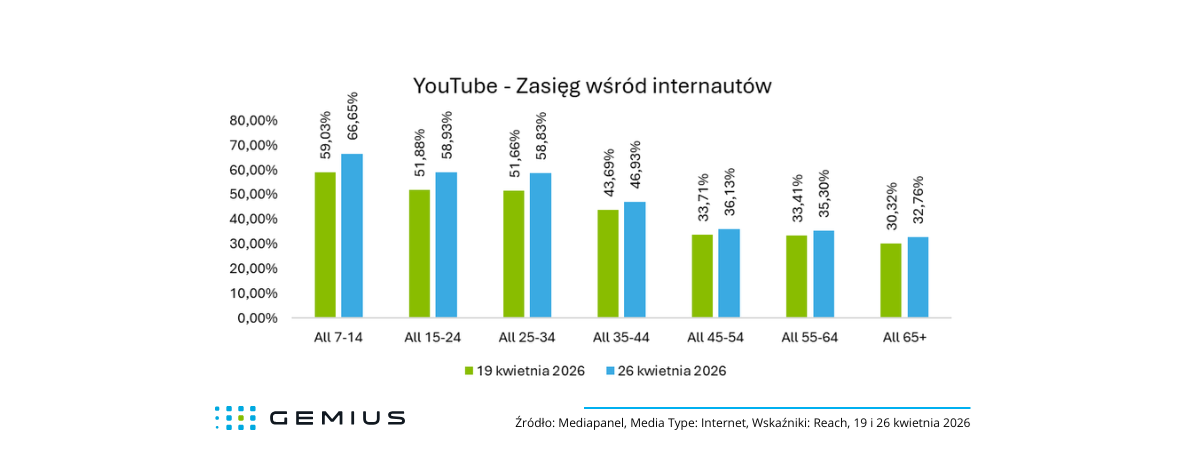 Równolegle do zasięgów wzrósł czas poświęcany na konsumpcję treści wideo. Przeciętny polski internauta spędził w niedzielę na YouTube niemal dwie godziny, co stanowi wzrost o średnio 12 minut w porównaniu do 19 kwietnia.