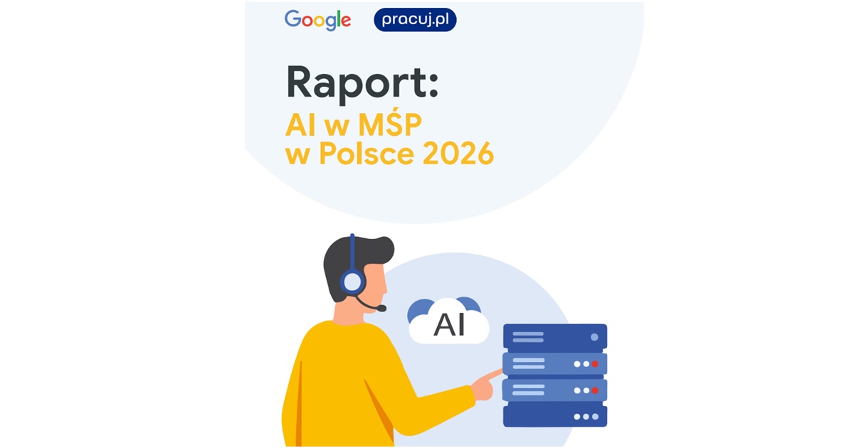 Raport „AI w MŚP w Polsce 2026”, opracowany przez Google na podstawie danych portalu Pracuj.pl, pokazuje, jak zmieniają się wymagania wobec pracowników w małych i średnich firmach. Choć liczba ofert pracy w tym segmencie nieznacznie spadła, zapotrzebowanie na kompetencje związane ze sztuczną inteligencją niemal się podwoiło. To wyraźny sygnał przejścia od zainteresowania technologią do jej praktycznego wykorzystania w codziennej pracy.