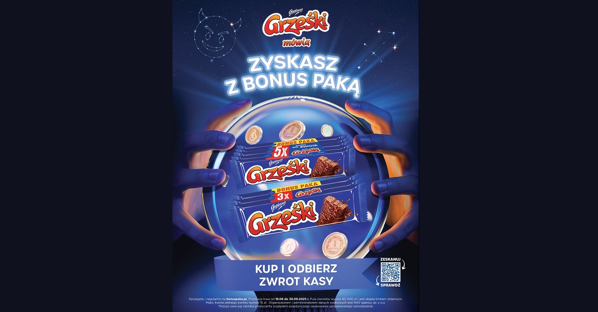 Grześki wchodzą w drugą połowę roku z wyraźnym akcentem sprzedażowym. Z tej okazji ruszyła nowa kampania promująca Grześki Bonus Paka (3 i 5 sztuk), wspierana mechanizmem cashback. Marka sięga po rozpoznawalny insight kulturowy – wróżkę rodem ze szklanego ekranu, która z przymrużeniem oka „przepowiada” zwrot pieniędzy na konto. Zintegrowane działania obejmują telewizję, kina, serwisy VOD, digital, media społecznościowe, event oraz silne wsparcie w punktach sprzedaży.