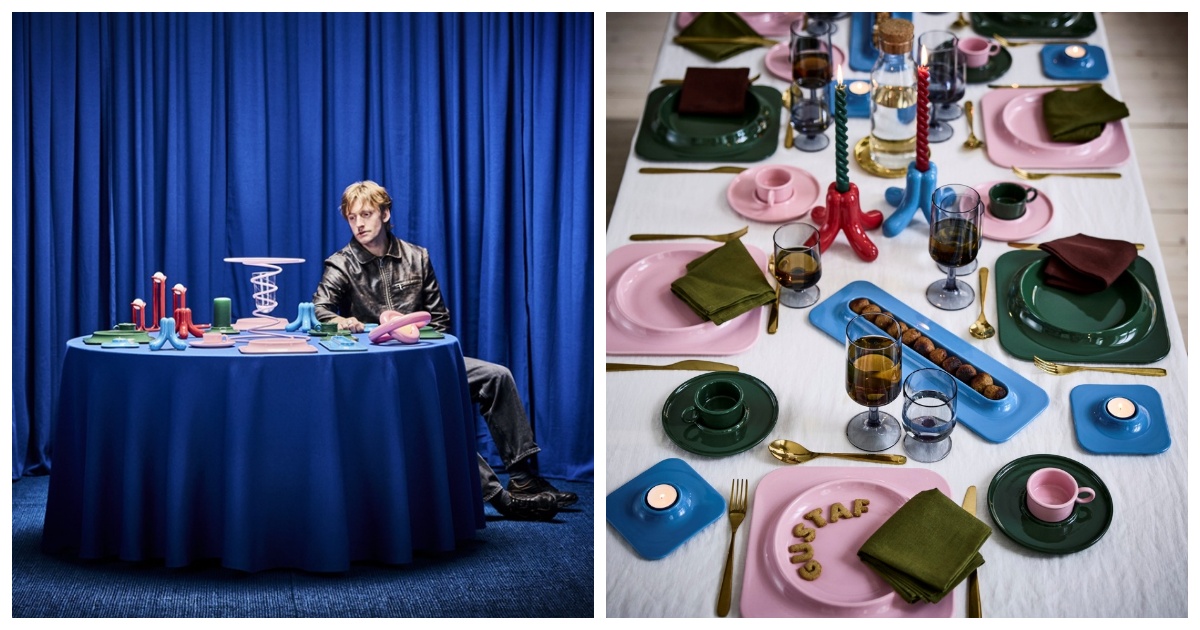 Centralnym punktem kolekcji stał się stół – miejsce spotkań i codziennych rozmów. To właśnie na nim najlepiej widać odwagę tej propozycji: porcelanowe talerze kontrastują kwadratową formą z miękkim, okrągłym środkiem, a ustawione razem przypominają barwną mozaikę. Specjalny talerz na klopsiki to ukłon w stronę szwedzkiej tradycji kulinarnej i jubileuszu – w tym roku kultowe klopsiki obchodzą 40-lecie w menu IKEA. Zestaw filiżanki i spodka zaprojektowany nie tylko do kawy czy herbaty, ale także do grzanego naparu Glögg, odwołuje się do tradycji wspólnych poczęstunków. Większy spodek pozwala zmieścić ciastka, pierniki albo inne dodatki, dzięki czemu zwykła przerwa w pracy zamienia się w mały rytuał.