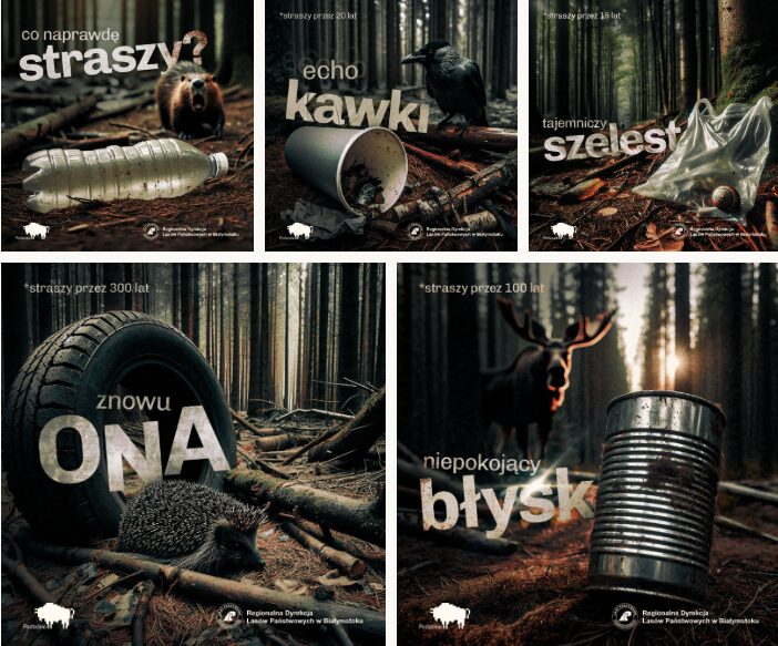 Głównymi bohaterami tej niezwykłej kampanii stały się kreatywnie nazwane „straszydła” – „BU!telka”, „znowu ona” – porzucona opona czy szeleszcząca torebka foliowa niczym duch. To znacznie więcej niż tylko zabawna gra słów – to mocny przekaz, który na długo zostaje w pamięci. Co istotne, kampania nie poprzestaje na zwróceniu uwagi na problem – aktywnie zachęca do włączenia się w istniejące inicjatywy, takie jak akcja „Zabierz5zlasu”, oraz podpowiada, jak samodzielnie stawić czoła „leśnym straszydłom”.