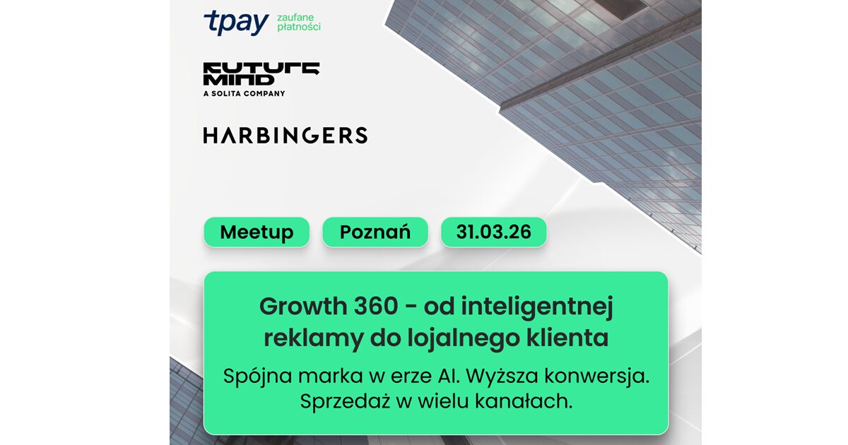 Już 31 marca 2026 r. w Poznaniu odbędzie się bezpłatny meetup Growth 360 – od inteligentnej reklamy do lojalnego klienta, organizowany przez Harbingers, Tpay oraz Future Mind. Wydarzenie zgromadzi liderów e-commerce, B2B, marketingu i technologii, aby wspólnie eksplorować najnowsze strategie wzrostu w dynamicznie zmieniającym się krajobrazie biznesowym.