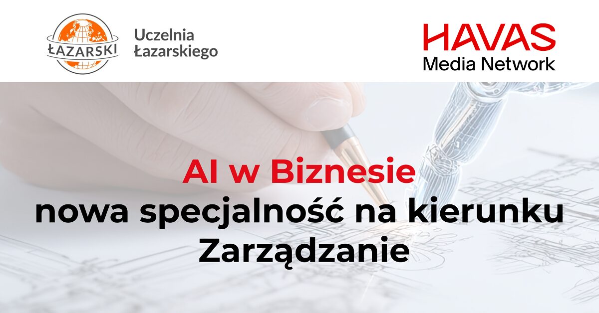 Havas Media Network został partnerem biznesowym nowej specjalności „AI w Biznesie”, realizowanej na kierunku Zarządzanie w ramach studiów II stopnia na Uczelni Łazarskiego. Program prowadzony w języku polskim trwa 2 lata i jest dostępny w trybie stacjonarnym i niestacjonarnym.