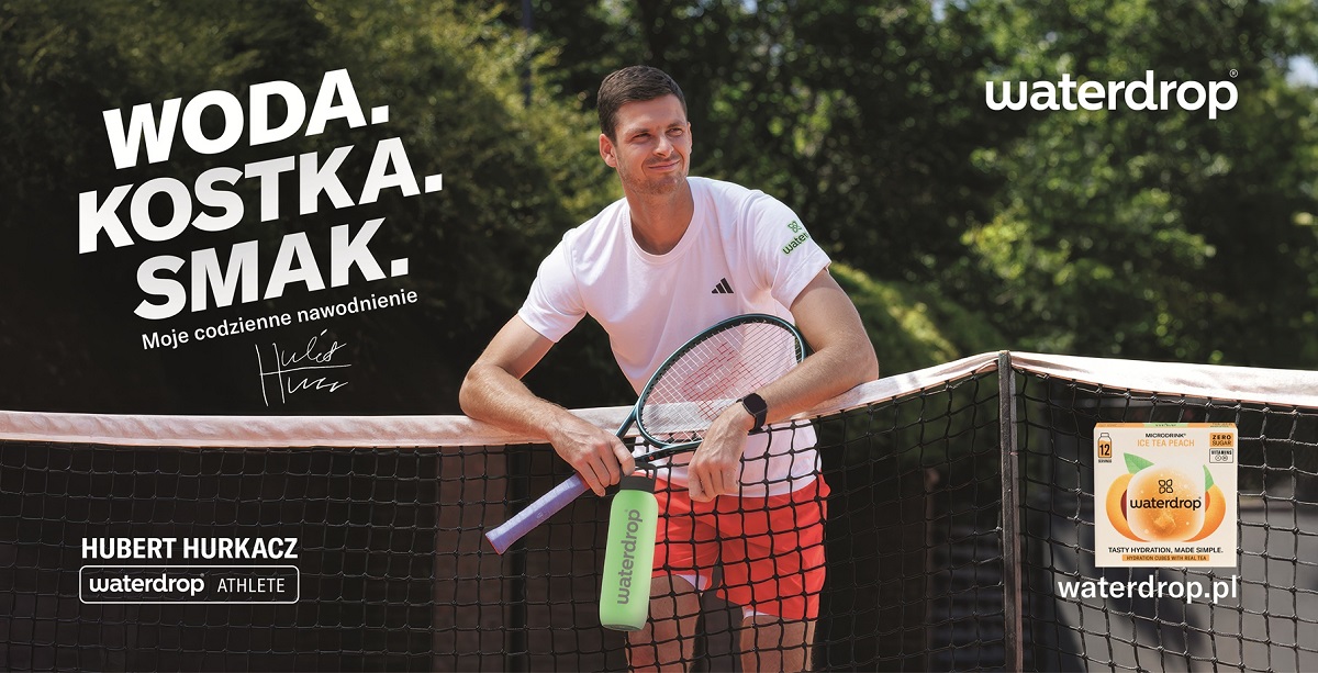 Hubert Hurkacz na billboardach w największych miastach Polski zachęca do picia wody na co dzień. Kampania Waterdrop z hasłem „Moje codzienne nawodnienie” pokazuje, że małe, konsekwentne wybory mogą mieć duże znaczenie – zarówno dla zdrowia, jak i dla planety. Prawie połowa Polaków pije za mało wody, bo nie pamięta o regularnym nawodnieniu, a ponad ⅓ nie lubi jej smaku. Wielkoformatowe billboardy z wizerunkiem tenisisty pojawiły się w kluczowych punktach komunikacyjnych Warszawy, Krakowa, Poznania i Wrocławia oraz przy trasie ekspresowej S7.
