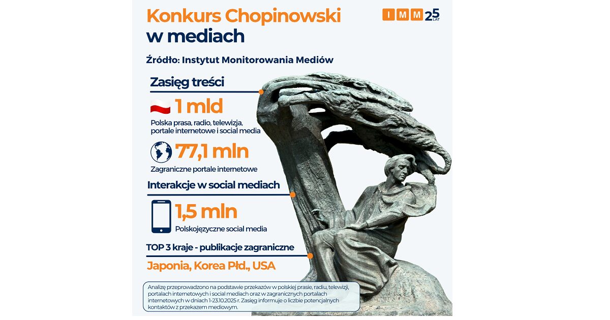 – Wyniki te potwierdzają globalny zasięg marki „Chopin” i jej potencjał w promocji Polski poprzez kulturę – zarówno w wymiarze artystycznym, jak i wizerunkowym – mówi Monika Ezman, dyrektor działu analiz w IMM.
