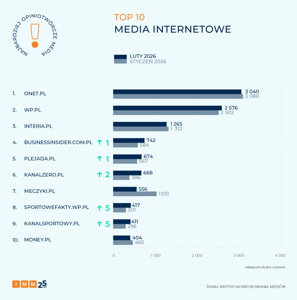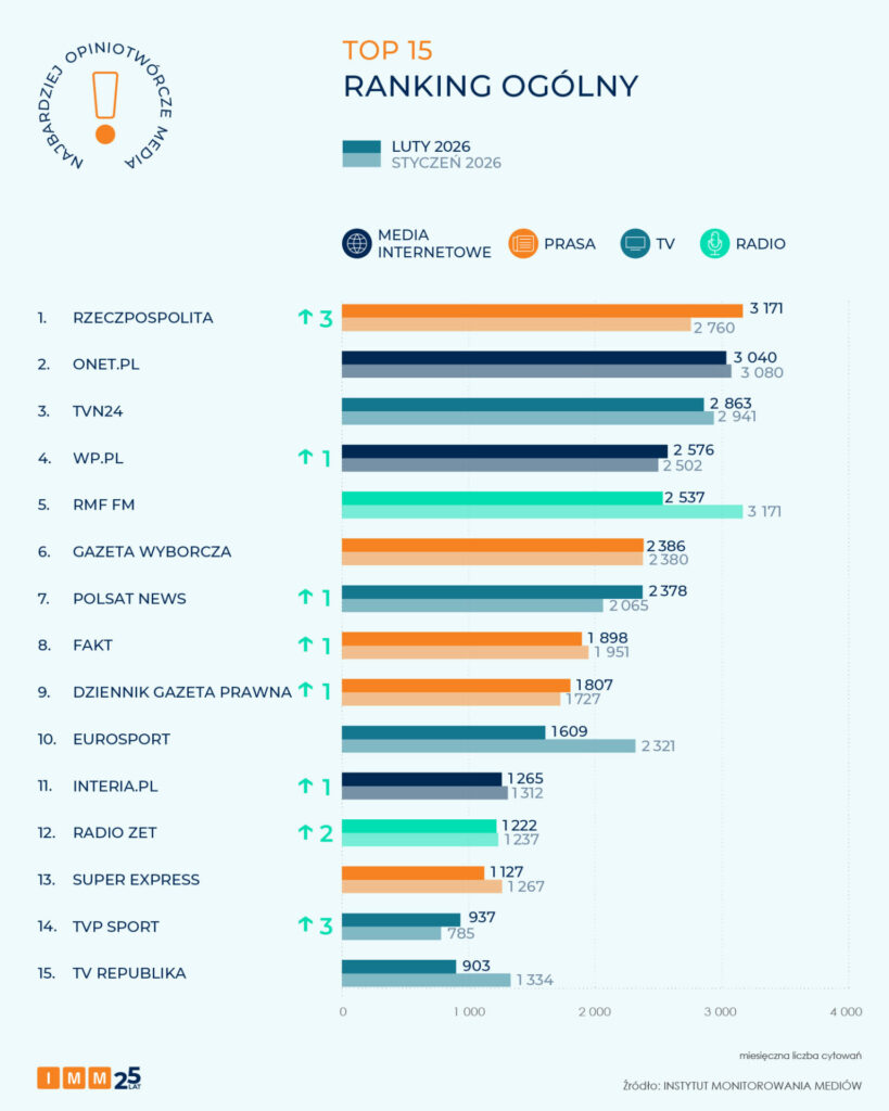 TOP 15 najbardziej opiniotwórczych mediów lutego