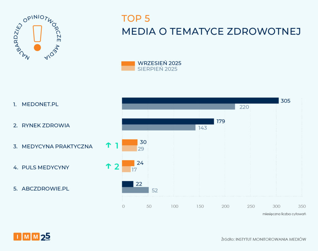 W rankingu najczęściej cytowanych mediów o tematyce medycznej pierwsze miejsce utrzymał Medonet, osiągając wynik 305 cytowań. Portal opisał przyczyny i objawy zespołu napięcia pourlopowego.