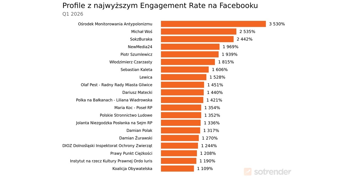Najwyższy wskaźnik Engagament Rate w Q1 2026 r. odnotowaliśmy bowiem na profilach: