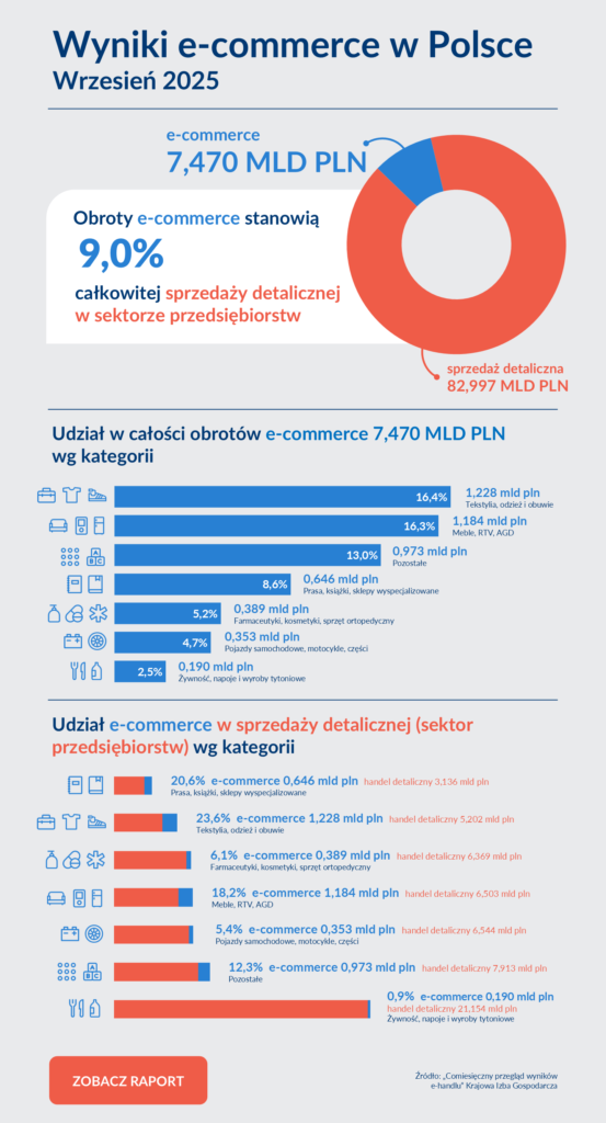 Wrzesień był więc kolejnym solidnym miesiącem dla branży, potwierdzającym odporność i stabilność e-commerce w Polsce. Sektor wchodzi w fazę bardziej zrównoważonego wzrostu, opartego na różnorodności kategorii i stopniowego zaawansowania rozwoju całego ekosystemu sprzedaży online.