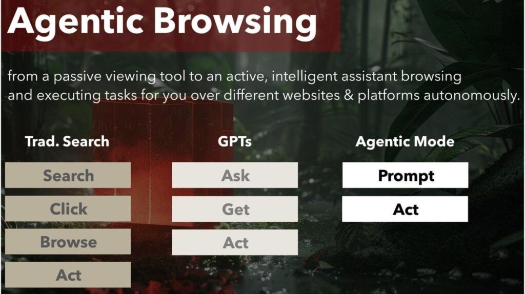W trybie agentowym (kolejny etap po tradycyjnym wyszukiwaniu i zapytaniu GPT) ścieżka użytkownika skraca się do zaledwie dwóch kroków: Zapytaj (Prompt) i Działaj (Act). Agentic browsing jest pierwszym etapem marketingu dla agentów. Następnym krokiem będzie między innymi tworzenie treści specjalnie dla agentów AI. Otwarta sieć agentowa (open agentic web) nagrodzi marki, które połączą widoczność, personalizację i pomiar w jedną spójną strategię. Optymalizacja i marketing w wyszukiwarkach nie umierają. Marki powinny jednak szybko zapoznać się z możliwościami i specyfiką wyszukiwania opartego na AI, aby być przygotowanym na przyszłość wyszukiwania.
