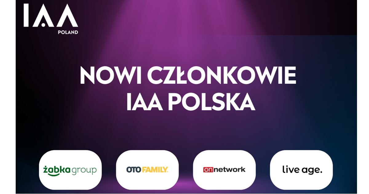 Do IAA Polska Międzynarodowego Stowarzyszenia Reklamy – dołączają cztery nowe organizacje, co podkreśla rosnącą rolę współpracy w rozwoju branży komunikacji marketingowej. Live Age, Onnetwork i OTO FAMILY wzmacniają kurię professional services, a Żabka Group – kurię reklamodawców.