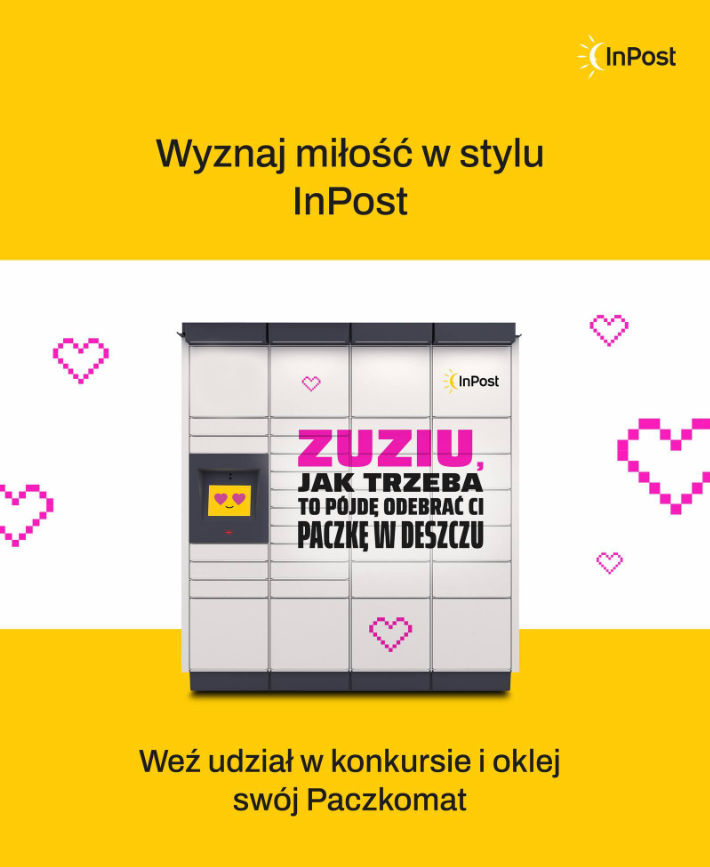 Pewnie zastanawiasz się, co było do wygrania? Otóż zaskoczę Cię, bo nie, nie była to nagroda rzeczowa, nie były to pieniądze ani nawet voucher na popularne „przeżycia”. InPost postawił na coś zupełnie nieszablonowego – coś, co generuje czyste, pozytywne emocje i jest niemożliwe do zdobycia w żaden inny sposób: oddanie własnej przestrzeni reklamowej w ręce użytkownika. Nagrodą było wyklejenie autorskiego wyznania na najbliższym dla zwycięzcy Paczkomacie. To romantyczny gest w skali makro, który na ukochanej osobie na pewno zrobił większe wrażenie niż kolejny pluszowy miś czy kwiaty.
