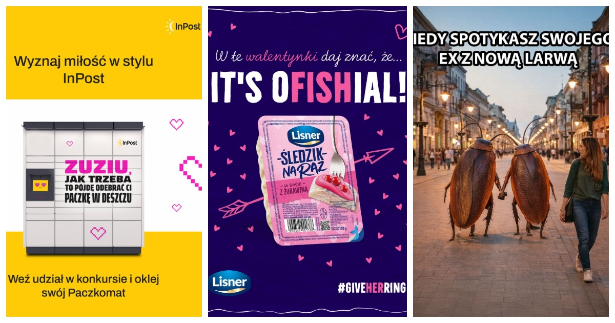 Na początek akcja, która bezsprzecznie i w pełni zasłużenie otwiera mój ranking. InPost po raz kolejny udowodnił, że potrafi wejść w buty swoich użytkowników i wycisnąć z nich pokłady kreatywności. Marka nie ograniczyła się do jednej publikacji – cała komunikacja w okresie okołowalentynkowym krążyła wokół miłosnych wątków, ale to konkretna, jedna aktywacja konkursowa skradła moje serce (i myślę, że nie tylko moje).