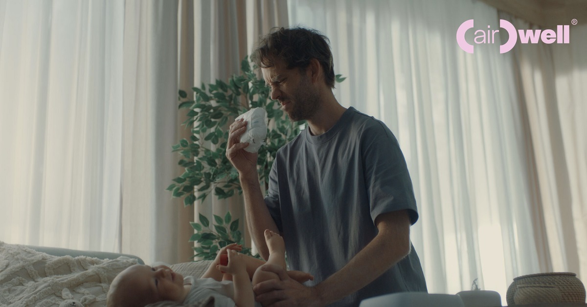 Scenariusze 60- i 20-sekundowe z humorem pokazują codzienność rodziców. W centrum jest ojciec i maluch, których „tajemnica” – naturalna, ale niekoniecznie o najmilszym zapachu – zostaje dyskretnie ukryta dzięki AirWell.