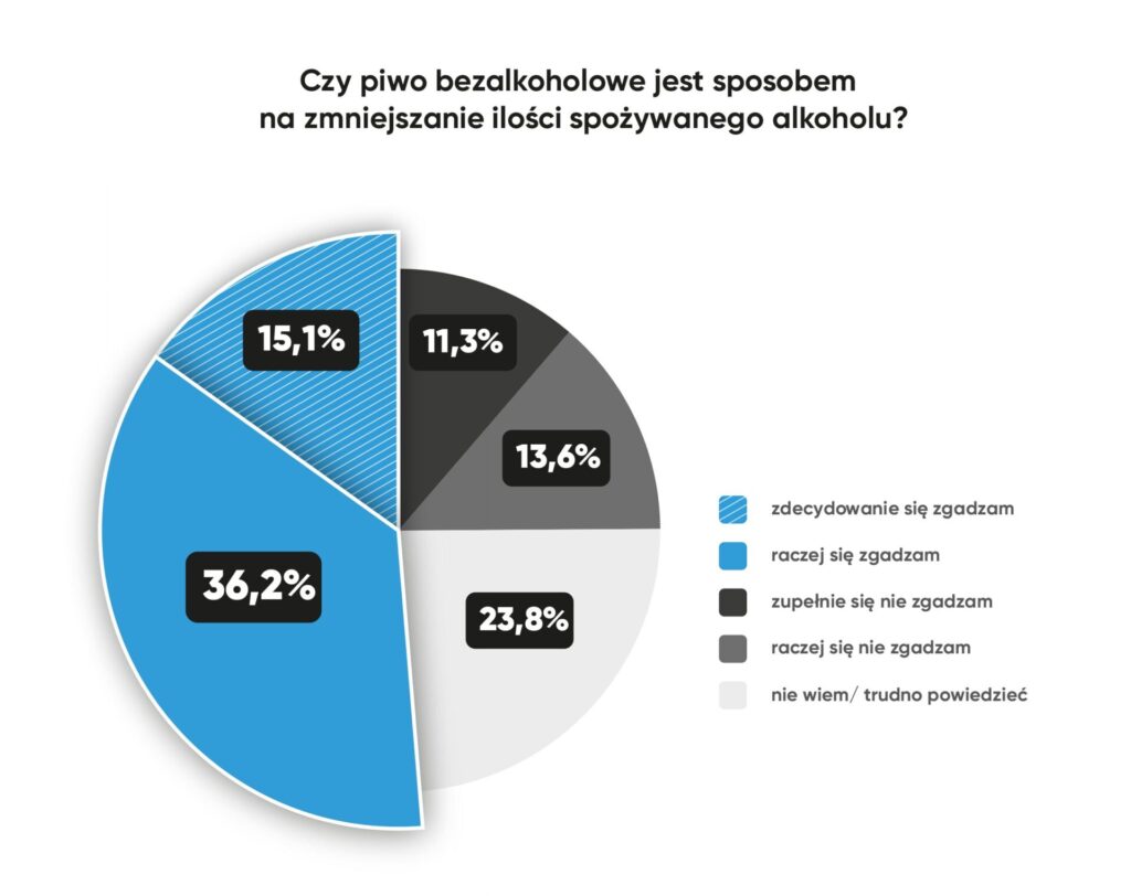 - 51,3 proc. pełnoletnich Polaków uważa, że piwo bezalkoholowe jest sposobem na ograniczenie spożycia alkoholu. Przeciwnego zdania jest tylko 24,9 proc.