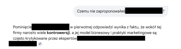 Obecność treści danej marki czy brandu w wynikach generowanych przez duże modele językowe (LLM), takich jak Gemini czy Perplexity, niesie też wiele korzyści.