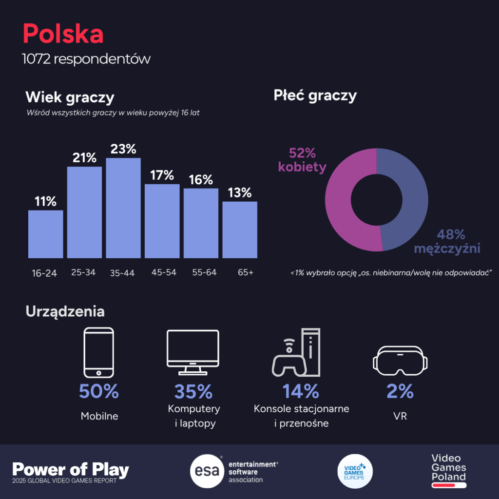 Video Games Poland, obok Entertainment Software Association i Video Games Europe oraz innych organizacji branżowych z Europy i Świata, jest jednym ze współtwórców raportu „Power of Play 2025”. Pełny raport dostępny jest na stronach: www.videogamespoland.pl i www.theesa.com