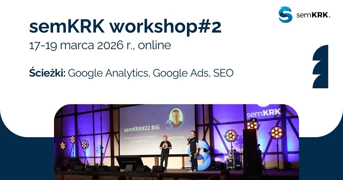 Po świetnym przyjęciu pierwszej edycji warsztatowej pod szyldem semKRK organizatorzy ponownie zapraszają na trzy dni intensywnej nauki w formule w pełni online. W dniach 17-19 marca 2026 r. odbędą się praktyczne warsztaty dla osób średnio zaawansowanych i zaawansowanych z Google Analytics, Google Ads i SEO, które będą prowadzone przez topowych ekspertów branży.