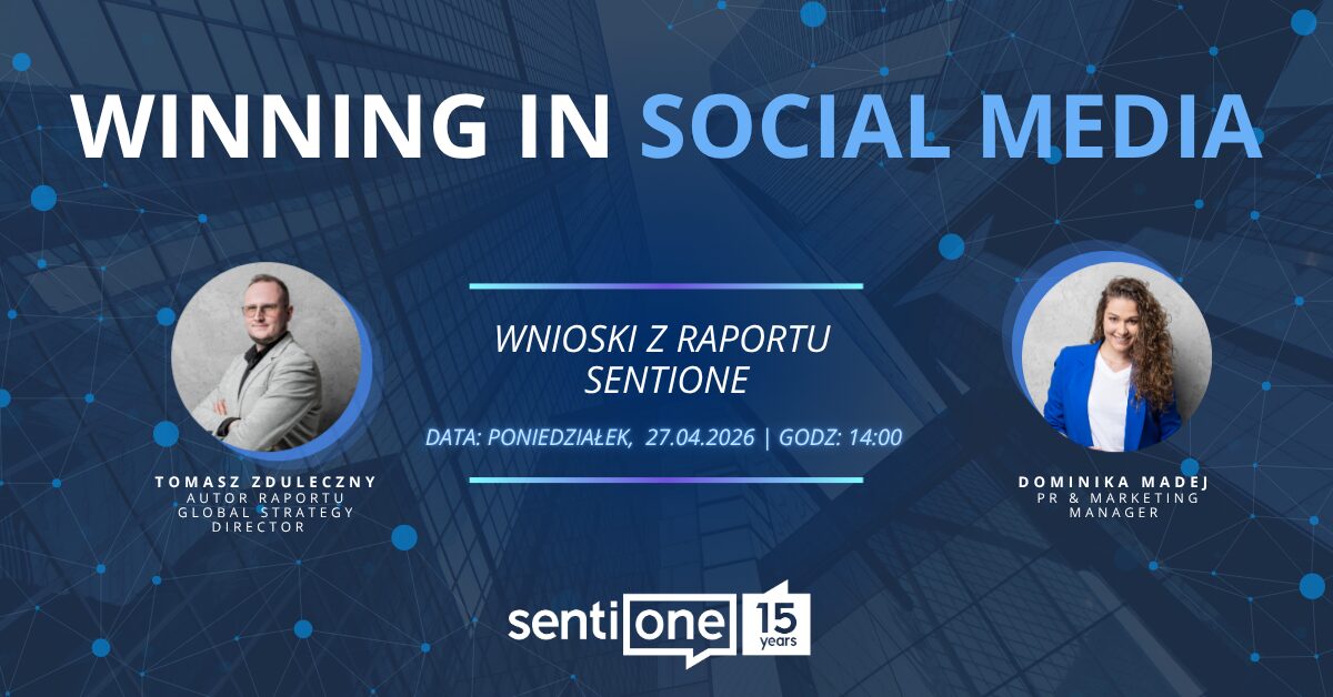 Piętnaście lat obecności na rynku i doświadczenia w analizie cyfrowych zachowań konsumentów staje się dla SentiOne punktem wyjścia do postawienia nowego pytania o to, czym dziś naprawdę jest sukces w przestrzeni cyfrowej. Firma, która przez lata obserwowała ewolucję mediów społecznościowych, relacji marek z odbiorcami oraz sposobów podejmowania decyzji biznesowych, zaprasza do udziału w webinarze poświęconym premierze najnowszego raportu „Winning in Social Media: The New Rules of the Game for 2026 and Beyond”, którego autorem jest Tomasz Zduleczny, global strategy director. Spotkanie odbędzie się 27 kwietnia o godzinie 14:00.
