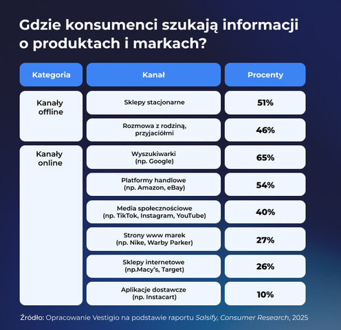 Według szacunków Statisty w 2025 roku przychody polskiego rynku elektroniki użytkowej wyniosą blisko 24 mld złotych, a sprzedaż internetowa będzie stanowiła już prawie 36 proc. tej kwoty. Spośród dostępnych kanałów komunikacji online największe znaczenie dla sprzedawców ma widoczność w wyszukiwarkach internetowych – tutaj bowiem prawie 2 na 3 konsumentów szuka produktów i marek. Nie są oni niestety otwarci na przekaz reklamowy, a co trzeci z nich używa adbloków. Jak podkreślają eksperci Vestigio, w tej sytuacji kluczem do pozyskania odbiorców są działania SEO. Muszą one jednak uwzględniać ewolucję AI, która przyniosła zmiany sposobów serwowania wyników przez wyszukiwarkę i formułowania zapytań przez kupujących.