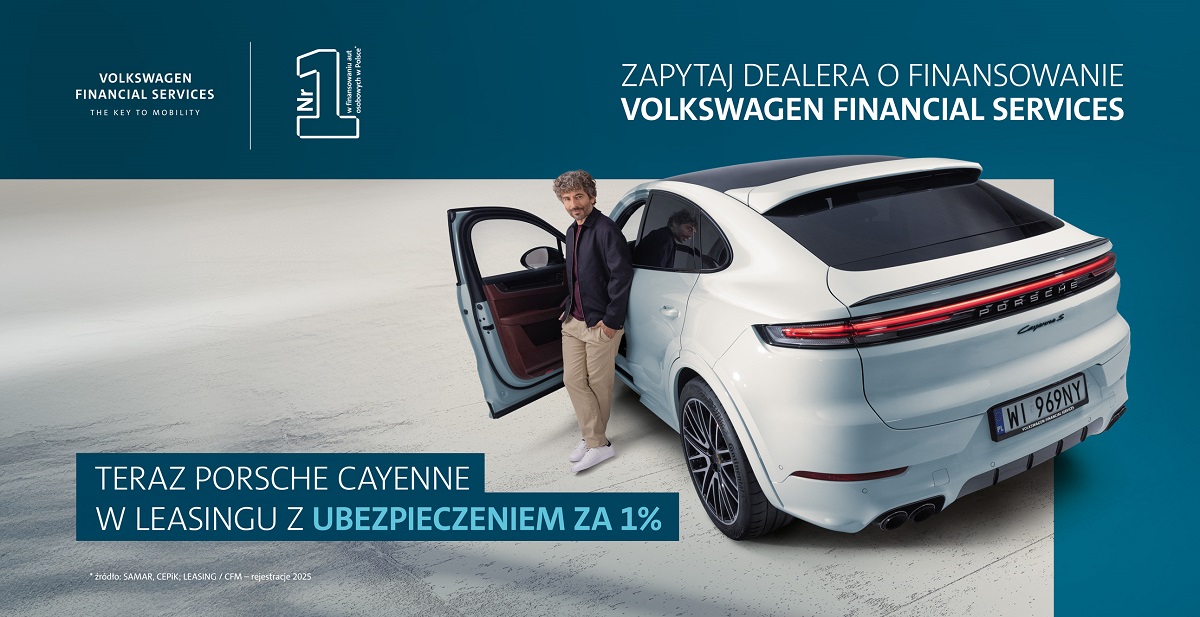 Wysokie standardy firmy potwierdzają nie tylko cykliczne badania satysfakcji, ale także odpowiednio dopasowana i korzystna oferta finansowania. Teraz Porsche Cayenne dostępne jest w leasingu z ubezpieczeniem za 1 procent. To kolejny dowód na dostarczanie jakościowych rozwiązań na miarę segmentu premium, w którym liczy się indywidualne podejście i obustronne zaufanie. VW FS to partner, który rozumie oczekiwania i aspiracje swoich nawet najbardziej wymagających klientów, a przy tym wspiera ich w realizacji najskrytszych marzeń o wolności i radości na drodze.