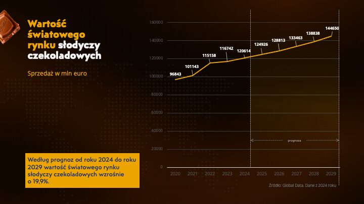 Najnowsze analizy wskazują, że branża słodyczy czekoladowych wchodzi w przełomowy etap, w którym sukces zależy nie tylko od walorów smakowych i jakości oferty, ale przede wszystkim od umiejętności reagowania na bieżące wyzwania oraz preferencje konsumentów. Według prognoz globalna wartość sprzedaży słodyczy czekoladowych ma wzrosnąć o blisko 20 proc. w kolejnych czterech latach. To dobry znak dla całej branży, także w Polsce, w której blisko 60 proc. wartości rynku słodyczy stanowią słodycze czekoladowe, wzrastając o niemal 10 pp. rok do roku.