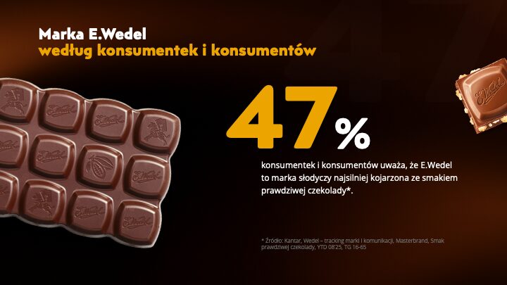 Firma Wedel od lat buduje swoją pozycję na polskim rynku słodyczy czekoladowych, pozostając w czołówce producentów, posiadających niemal połowę jego udziałów. Jak wynika z badania zrealizowanego przez Kantar, blisko połowa (47 proc.) konsumentów i konsumentek uważa, że to właśnie marka E.Wedel najmocniej kojarzy się ze smakiem prawdziwej czekolady.