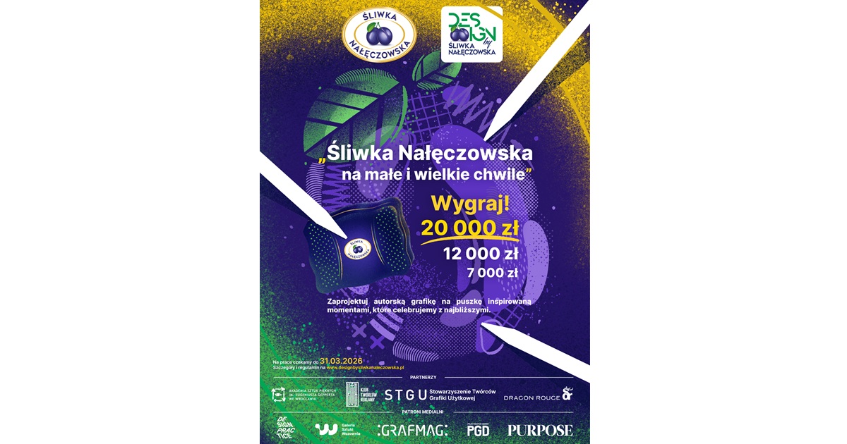 Śliwka Nałęczowska ponownie zaprasza twórców do świata designu. Tegoroczna odsłona konkursu zachęca twórców do przygotowania autorskiego projektu grafiki na puszkę 490 g, inspirowanego momentami, które celebrujemy z bliskimi. Na uczestników czeka pula nagród o łącznej wartości 50 tys. zł. Projekty można nadsyłać do 31 marca 2026 r.